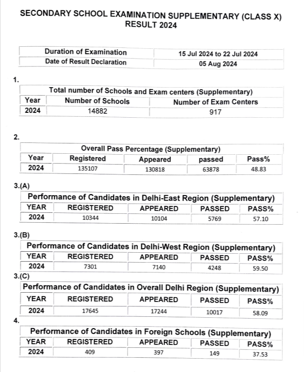 It is informed that the result of the Supplementary Examination, Class X session 2023-2024 is ready for declaration at about 03.00 P.M. on Monday 5th August 2024